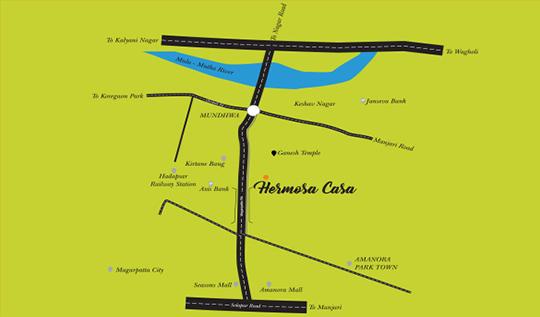 Live in the home-to-work and back in minimum distance planned Mundhwa! Aptly, the futuristic side of Pune, Mundhwa comprises of business parks, residential hotspots, prime entertainment destinations, and all the luxuries needed for a comfortable lifestyle. In its close proximity are prime localities of Magarpatta City, Koregaon Park, Kharadi IT Park and a quick drive away is the Pune Railway Station. Also, with the upcoming business parks around, the locality has already gained a preference of many affluent class families, thus making it perfect for you to start your new beginnings.